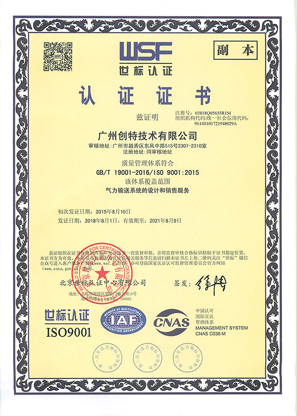 廣州創(chuàng)特成立于2000年5月, 專業(yè)從事粉、粒料輸送及處理的研究及總包工程服務(wù)。我們擁有稀相及密相輸送的前沿技術(shù),專注于為客戶提供獨(dú)特價(jià)值的物料處理解決方案。我們秉承“創(chuàng)新成就客戶”的理念,依靠在化工、食品醫(yī)藥、新能源等領(lǐng)域雄厚的粉料處理技術(shù)及豐富的專業(yè)經(jīng)驗(yàn),榮幸地成為多家全球500強(qiáng)企業(yè)的粉料處理服務(wù)商,并在業(yè)界贏得良好的聲譽(yù)。