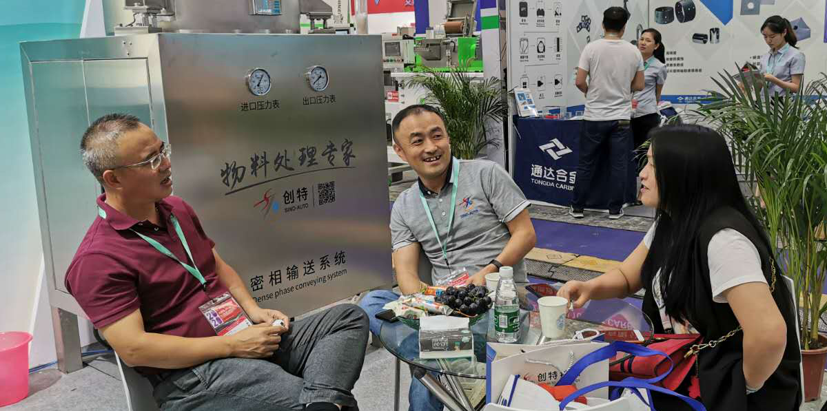 此次創(chuàng)特展臺設(shè)立在擠出機械專區(qū)2.2J75, 經(jīng)過精心準備,憑借精湛的技術(shù)水準,高性能的智能設(shè)備再次成為同行業(yè)中的一大亮點。 匠心獨運設(shè)計的全自動高速拆包機和智能密相輸送系統(tǒng), 吸引了眾多中外客商的駐足觀看與咨詢洽談。有不少求購商帶來了在現(xiàn)場遇到的技術(shù)難題,經(jīng)過創(chuàng)特高素質(zhì)工程師的現(xiàn)場技術(shù)指導與工藝優(yōu)化,眾多客戶大為滿意,當場有不少客戶有采買和合作意向。