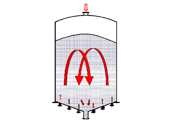 Special design of blending silo san be provided for instance venting,nitrogen sealing and explosion protection. Lower energy consumption at the same mixing condition.